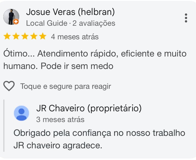Seja bem-vindo à JR Chaveiro, a loja do José Ricardo, referência em serviços de chaveiro com excelência, segurança e confiança. No JR Chaveiro, oferecemos soluções rápidas e seguras para chaves, fechaduras e miolos, abertura de veículos, confecção de chaves de carros e motos garantindo segurança e praticidade para sua casa, veículos ou empresa. Atendemos 24 horas serviços de emergência